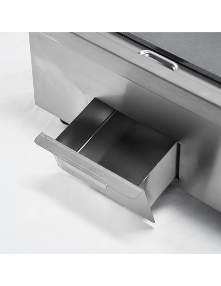 Powerful and reliable, this professional steel griddle features a generously sized steel cooking surface that is all smooth, perfect for breakfast, lunch or dinner services. The heavy duty elements ensure a rapid heat up and an even spread of heat across the wide griddle surface. With simple dial thermostat control and removable fat collection drawer, the restaurant griddle is incredibly easy to use, clean and maintain. This catering fry top is an incredible bargain at the current discount sale price.