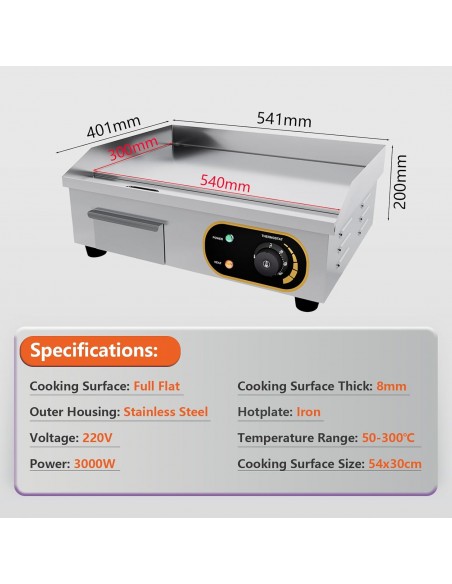 Commercial Griddle Smooth 540x400x200mm 3kW Electric | DA-EG818B