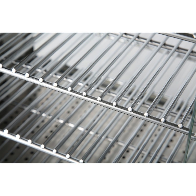 Attractively promote your heated pies, pasties and sausage rolls with this heated display case. The stainless steel and glass design gives your customers a 360° view of your best heated food selection, perfect for cafeterias, catering, concessions, convenience stores, pubs & bars, restaurants & cafés, supermarkets, delis and other professional catering establishments.