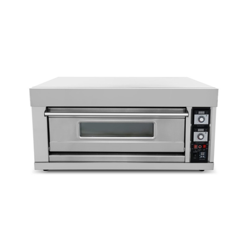 Great value for money thermally insulated digital display electric pizza oven well suited for small pizzerias, bars and restaurants. Firestone for fast and crispy cooking of pizza, quiche, lasagne, pies. This oven can also be used as a bakery oven, with capacity for 400x600mm bakery trays. Space saving yet high output pizza oven ideal for any catering establishment!