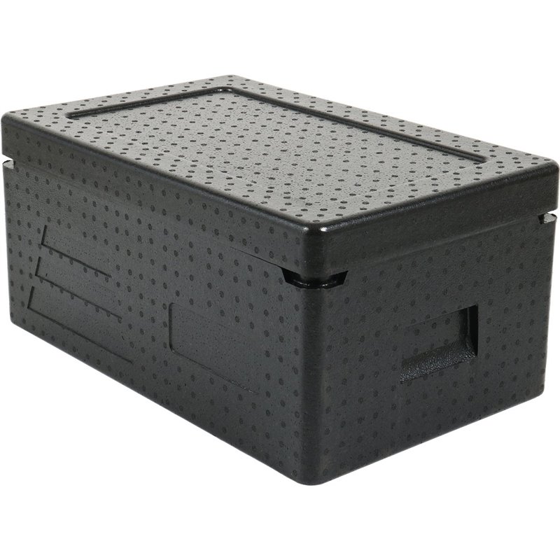 With excellent insulation, robust structure made of CFC free Expanded Polypropylene (EPP), these bakery crate thermoboxes are durable, lightweight and stackable, as well as hygienic and dishwasher friendly! This transporter is perfect for hot, cold and fresh food, that is assisted by it's tightly closed lid. This particular item is top loaded and is specially made for GN pans, this thermo box also comes with ergonomic handles to make it easier to even easier to carry and transport.