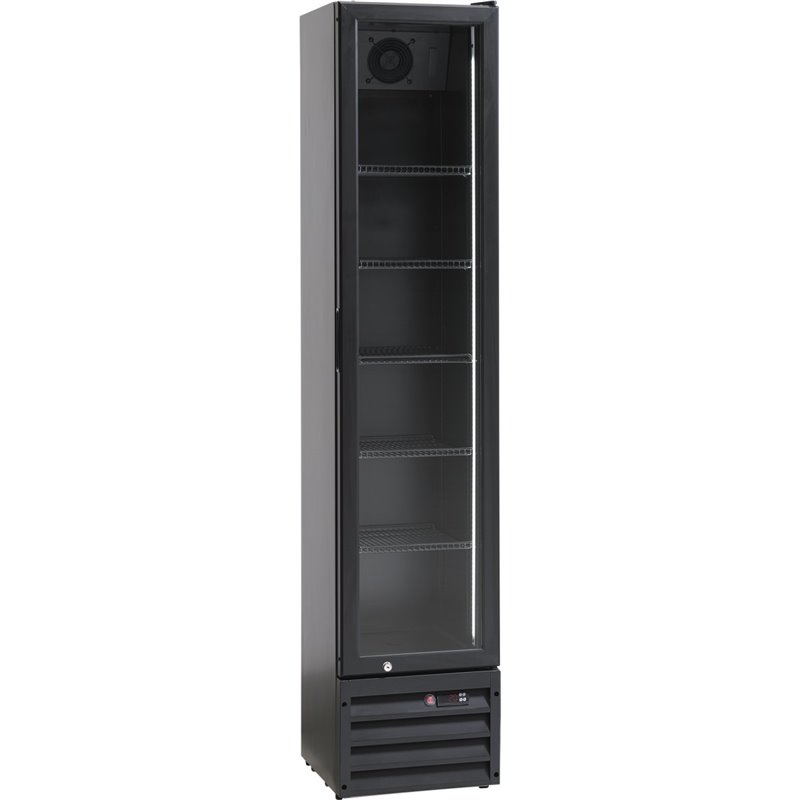 Full-height slimline profile with a stylish black exterior and interior fits seamlessly behind the bar or in front-of-house displays.Double Glazed Glass Door