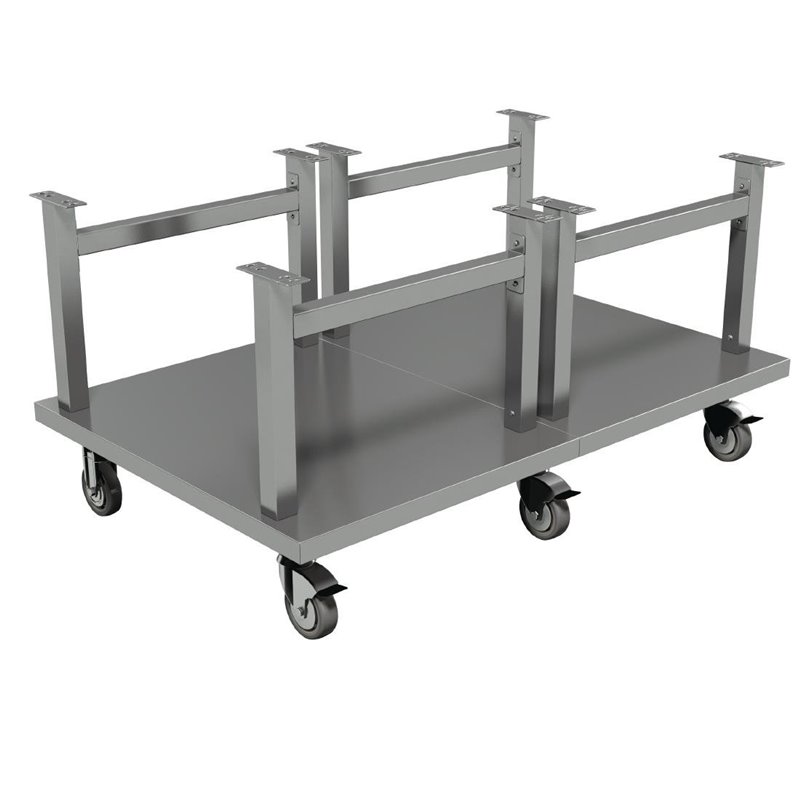 Stainless steel open stand with shelf for mounting any Dominator Plus 1200mm wide countertop model on. Is supplied with castors and is shipped flatpacked so needs to be assembled on-site.