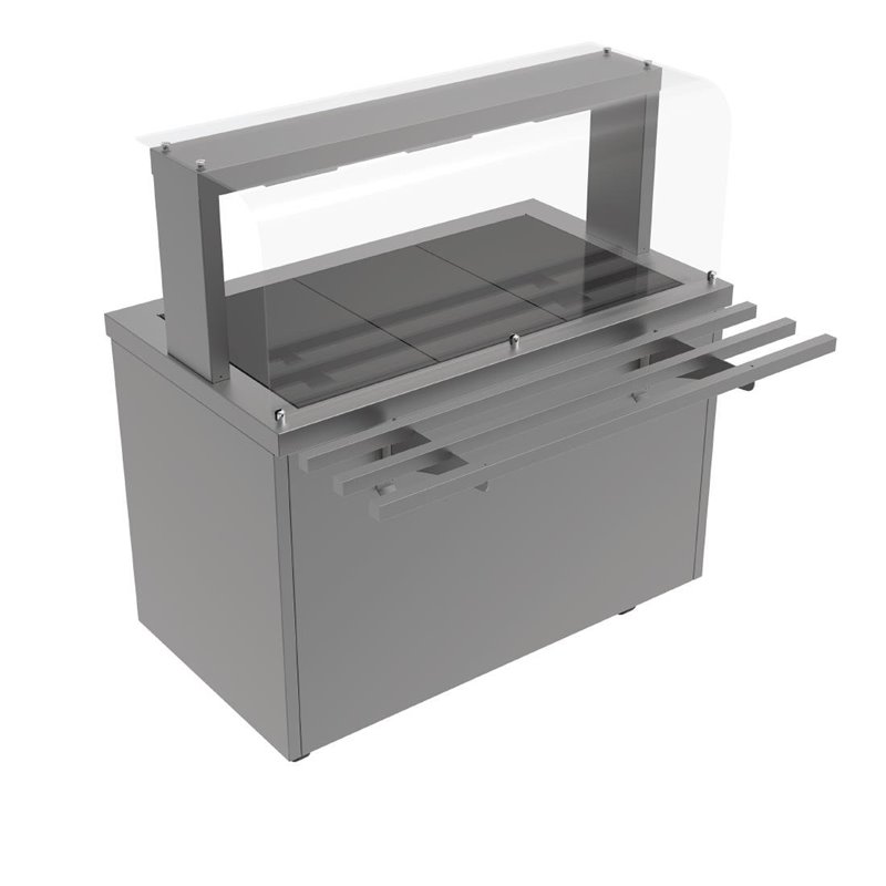 - Thermostatically-controlled fan-assisted hotcupboard, glass hot tops and 200W ganty lamps combine to ensure ideal food temperature is maintained throughout duration of service