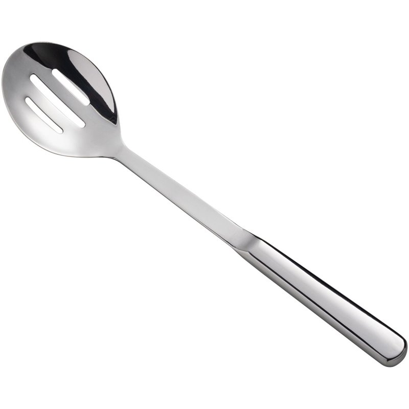 Offering unparalleled style and function for an upscale, dynamic presentation. Use this spoon to serve sides like corn or peas as the slots allows excess liquids to drain off the food before serving. From restaurants and hotels to catered events and parties, the polished design and versatile function of this stainless steel slotted spoon makes it a stylish alternative to traditional serving utensils.