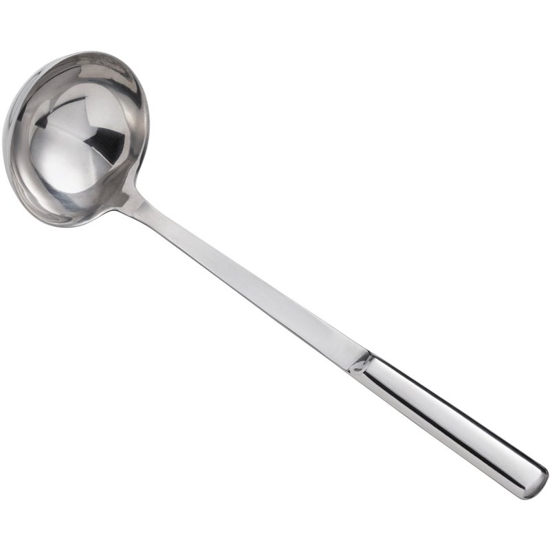 Offering unparalleled style and function for an upscale, dynamic presentation. Use this ladle to effortlessly portion out and serve soups and stews to your waiting guests. From restaurants and hotels to catered events and parties, the polished design and versatile function of this stainless steel ladle makes it a stylish alternative to traditional serving utensils.