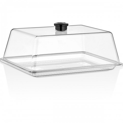 Polycarbonate tray with dome cover. The dome cover is designed to keep food safe from contamination, with a sturdy clear polycarbonate construction to allow for easy viewing. The ideal addition to any professional food service establishment, including bakeries, restaurants and cafes.