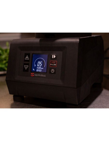 - Lateral product output: requires less space on the worktop and guides the product, avoiding splashes.