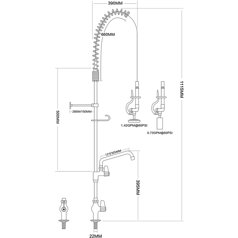 Professional and extremely durable pre-rinse spray ideal for food service, commercial kitchens, restaurants and hotel applications. With a spring action gooseneck and turn ceramic cartridge to prevent leakage, both pre-rinse units are robust & durable for frequent use.