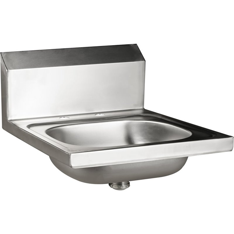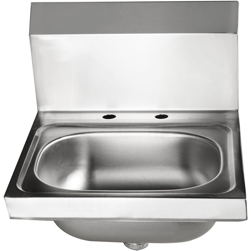Keep your restaurant up to code without sacrificing space with this hand sink with a single bowl and a convenient high back splash. This easy-to-clean, compact sink easily fits in tight spaces and securely attaches to the wall or a surface to open up floor space for other uses. Its attractive, yet simple design will be sure to encourage cleanliness in the kitchen.