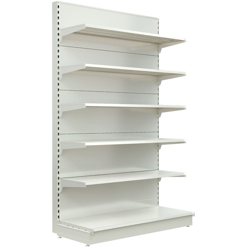 Retail wall shelving add on unit in white. Built to withstand daily retail use, this fantastic value wall shelving unit provides a spacious and convenient display suitable for any retail establishment. The versatile modular system includes starter units, add on units, and corner units which can be purchased separately to create customised shelving to suit any retail requirements.