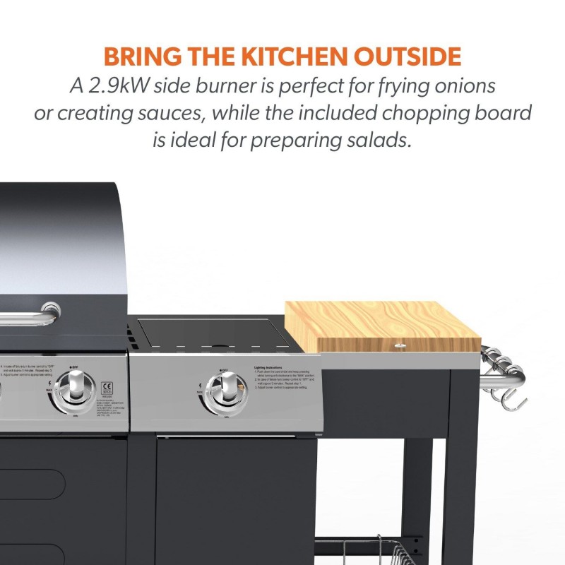 It’s a full kitchen in your garden! 4 Burner Gas BBQ Grill with Side Burner - Black