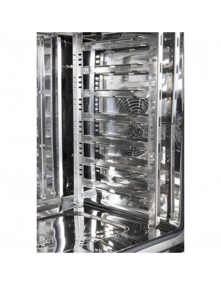 With its generous 6x 1/1 gastronorm tray capacity, the Buffalo combination oven provides an impressive amount of space for its compact size. Easily adjustable shelves and gastronorm compatibility ensure you can quickly transfer trays between stations to save time.