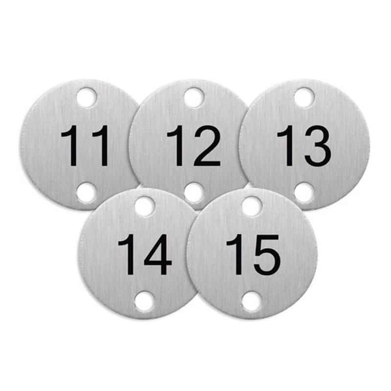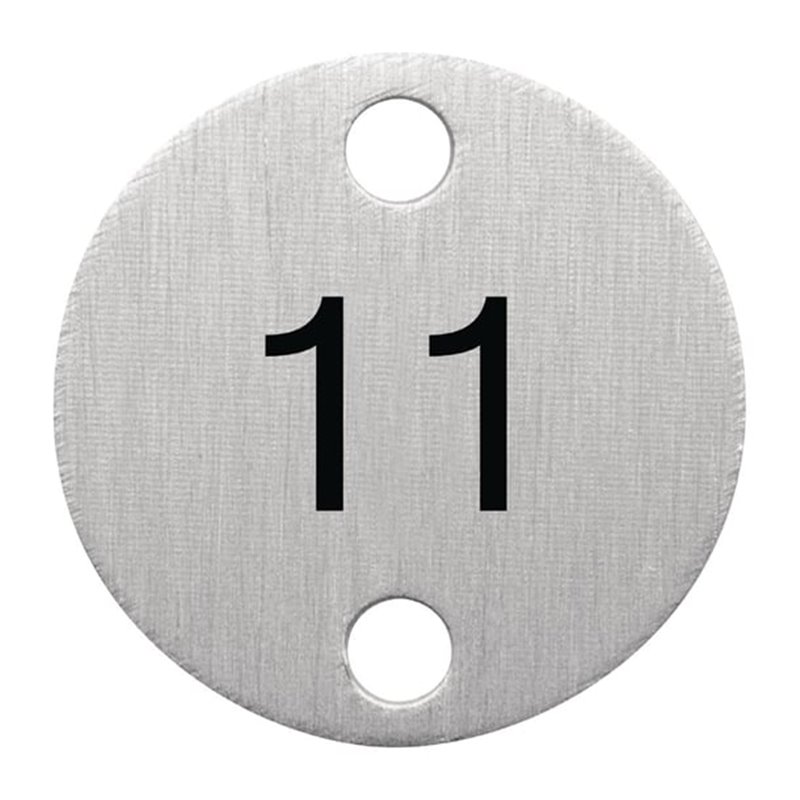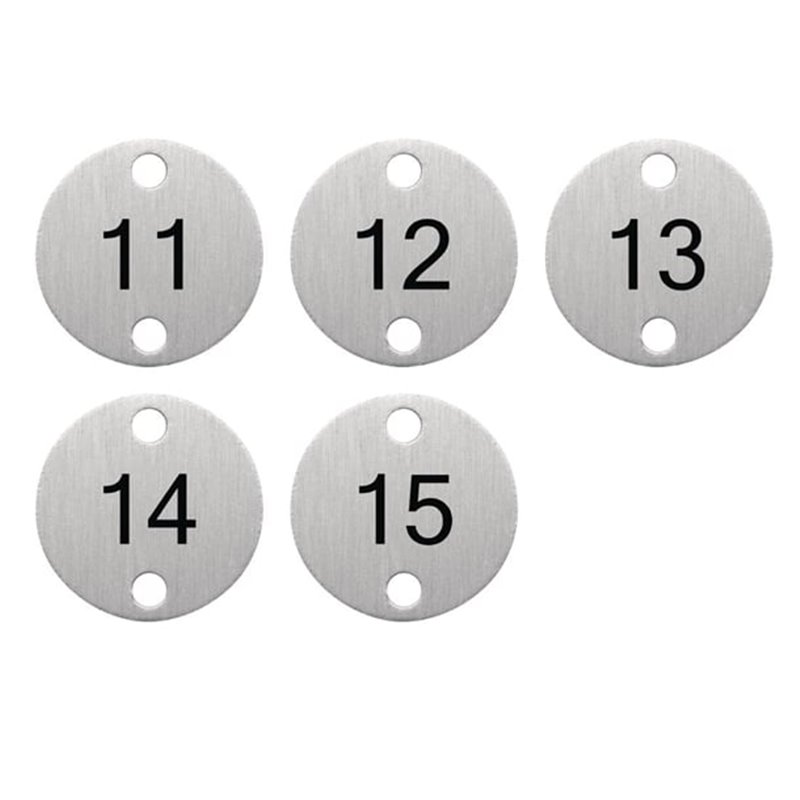 Cut down on ordering mix-ups with this simple table number set. Supplied with screws for easy attaching to your table tops, they're the quick way to make ordering simple - ideal for venues with a self-ordering system. Made from 201 stainless steel for long-lasting durability and finished in a stylish silver to suit any table top. Pack contains numbers ten to fifteen.