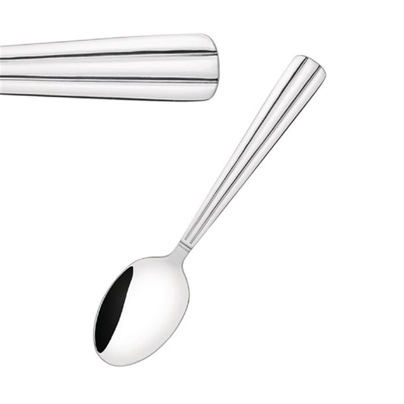 Add some understated style to your beverages and small desserts with these Olympia Amelia teaspoons. Featuring a linear design along the length of the handle, these teaspoons offer a subtle, art deco styling, giving your table settings an exceptionally attractive, vintage look. Featuring a highly reflective polished finish, this cutlery oozes elegance and sophistication, adding a touch of luxury to your tables to truly wow your diners. Crafted from premium 18/0 stainless steel, the spoons are also highly durable and dishwasher safe, helping you keep them in impeccable condition at all times.