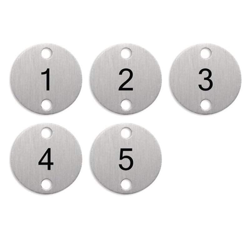 Make ordering easy with these simple table numbers. Easy to fix to any table top and supplied with screws, they're the quick way to simplify your ordering process. Made from durable 201 stainless steel for long-lasting use and finished in silver to complement any table top. Numbers one to five supplied.