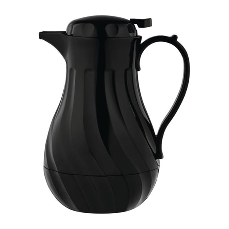 Sustain the freshness and temperature of your hot and cold beverages with this premium two litre Olympia insulated swirl jug. Boasting a robust plastic inner liner, this black beverage jug guarantees remarkable heat retention, ensuring your teas, coffees and cold drinks stay at the perfect temperature for longer. Designed with a secure screw cap, the jug also helps to prolong the shelf life of your juices and milk to reduce wastage in your premises. Completed with a thumb-lever mechanism, the jug enables easy and accurate dispensing, giving you complete control when pouring and serving.