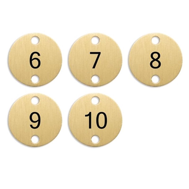 Streamline your ordering system with these stylish table numbers. Supplied with screws for quick fixing to any table top, they're ideal for cutting your chance of ordering mix-ups - perfect for venues with a self-ordering process. Made from tough 201 stainless steel, they're durable enough for the busiest venues, and feature a smart bronze finish to bring a touch of style to any table. Pack contains numbers six to ten.
