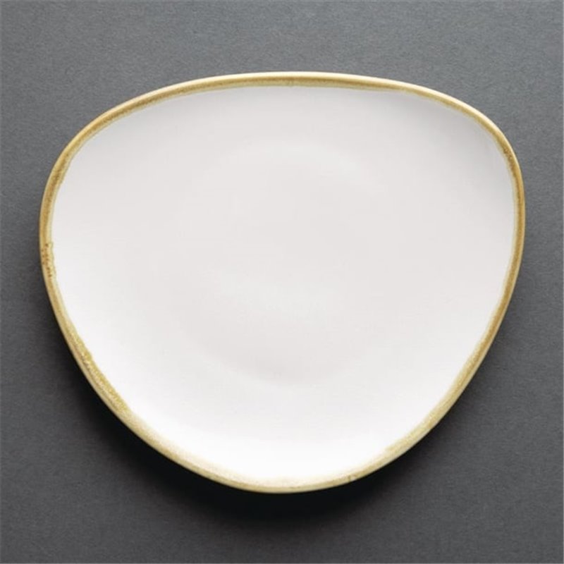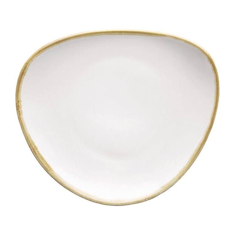 Finished in a soft and creamy white, the Chalk Triangle Plate from Olympia Kiln is the perfect backdrop for any vibrant dish. The cool finish gives the colours in the fresh ingredients you use a neutral backdrop against which to pop, ensuring your dishes burst with energy and look every bit as good as they taste. The hand-applied rim adds an extra layer of depth, capturing the rustic, handmade feel of artisan crockery - perfect for tapping into the relaxed and simple feel of the farm to fork dining trend guests love. The rounded triangular shape adds the finishing touch, helping to break up table tops laid with all-circular crockery to add an extra dash of visual depth.