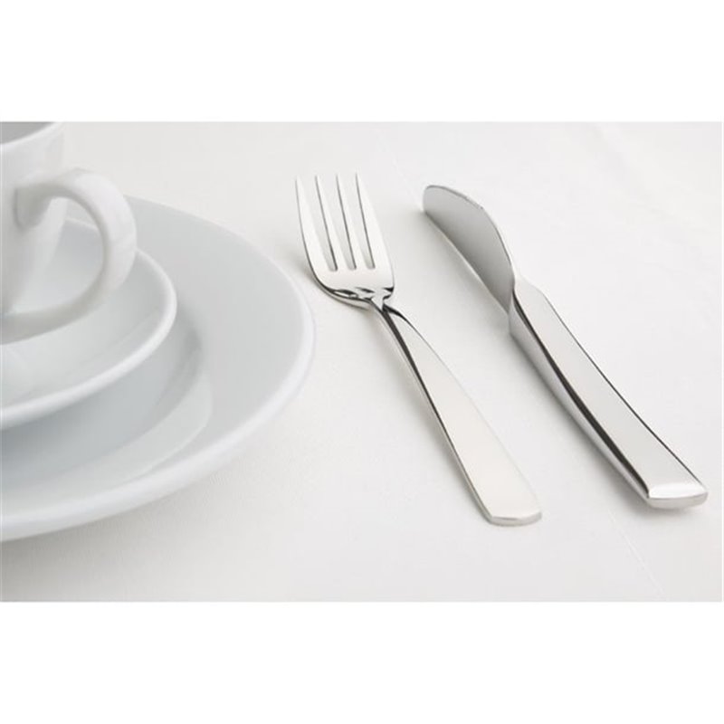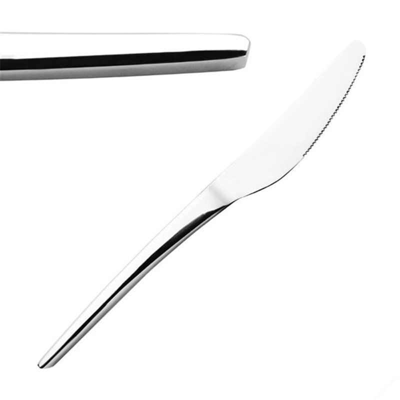 Created by Olympia, these ultra modern dessert knives are perfect for serving with cake or afternoon tea. When laid on the table, the blade of these dessert knives will stand upright creating an extra dimension of style and complexity to the table setting. The perfectly balanced knife is crafted from solid stainless steel and polished to a mirror like finish, offering the ultimate feel of quality in the hand.