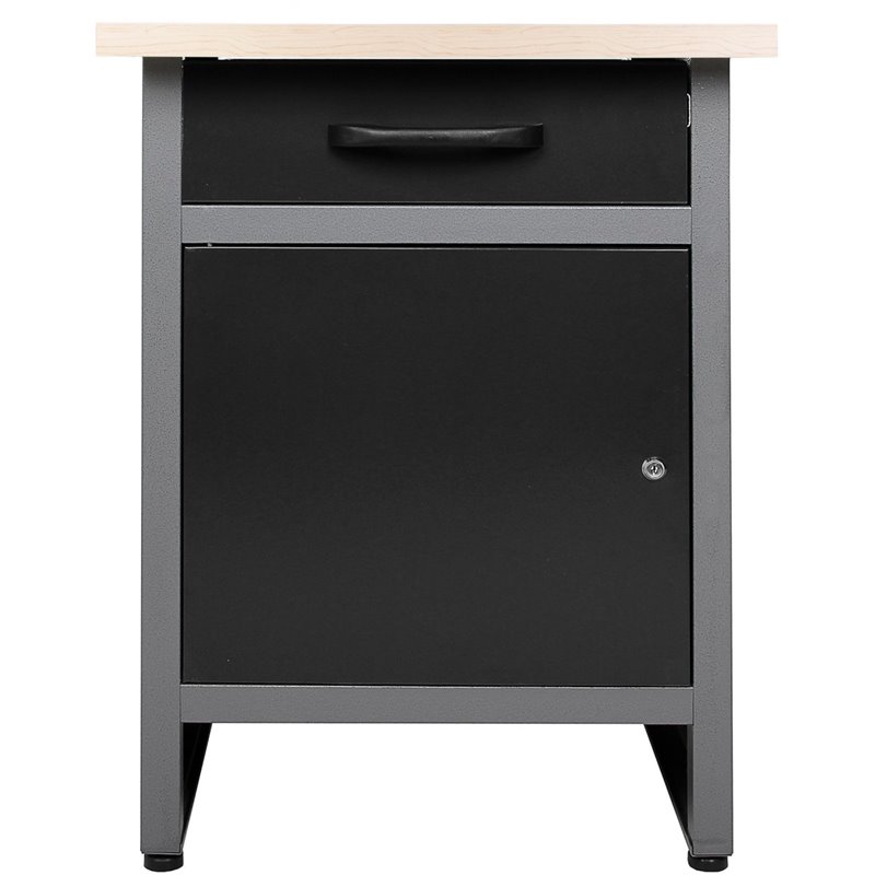 Professional Grey and Black Workshop Workbench with 30mm Wooden Desktop, Drawer and Lockable Door 600x600x850mm | Stalwart DA-TC