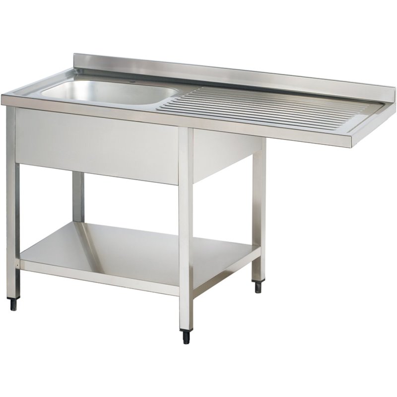 Commercial Sink for Passthrough Dishwashers 1 bowl Left Bottom shelf Splashback 1200mm Depth 700mm Entry Table | Stalwart