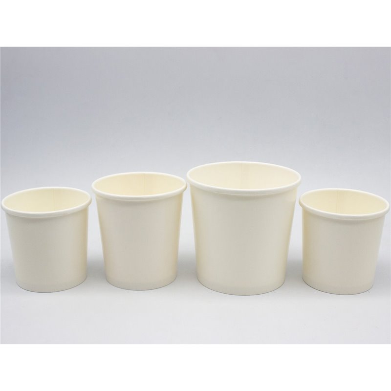 Disposable soup bowls made of PE (polyethylene) coated paper, providing a very strong moisture and grease barrier.