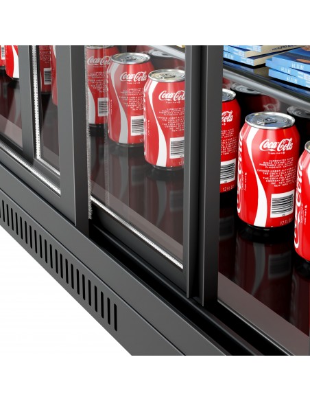 🍻 Back Bar Bottle Cooler – 3 Sliding Doors | 300L | Sleek Black Finish 🖤
