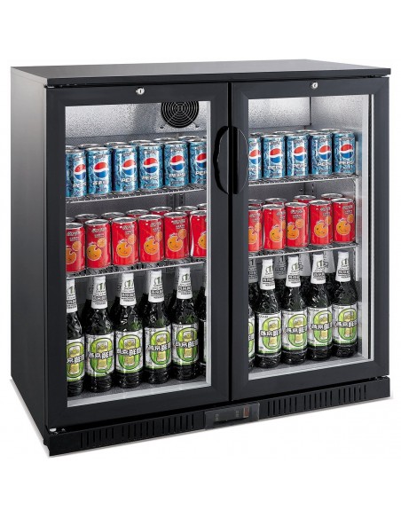 Back bar cooler 2 hinged doors 220 litres Black - 2 YEARS ONSITE WARRANTY