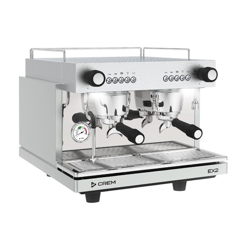 The compact Crem EX2 in light grey is an attractive and extremely versatile professional two group espresso machine. Designed for everyday user-friendly reliability and performance, the EX2 gives you the functionality you need to make fantastic quality coffee, time and time again.