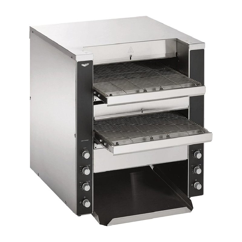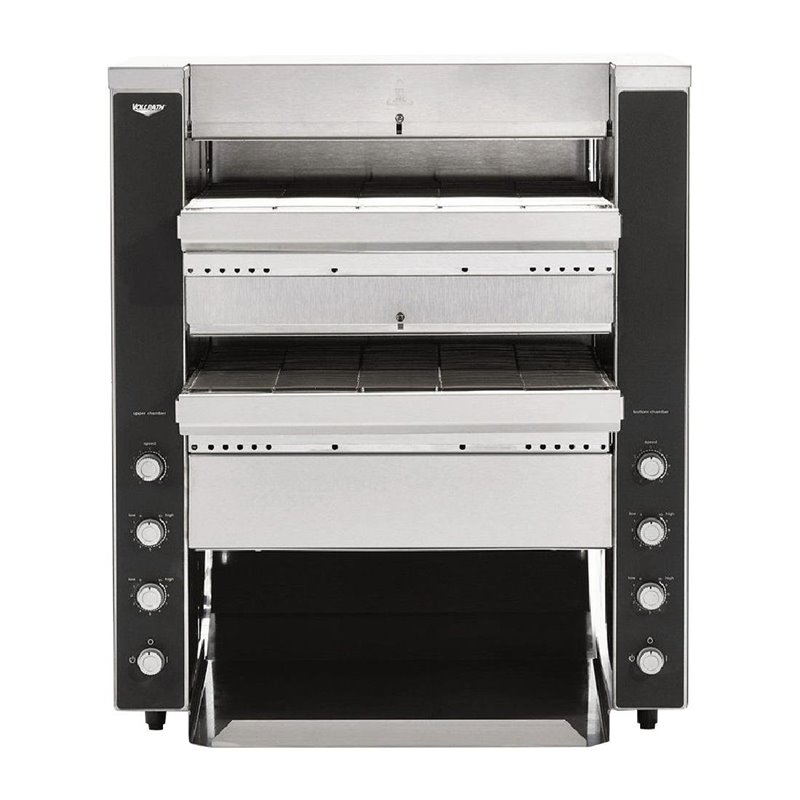 The Vollrath CT4-230DUAL energy saving conveyor toaster is a great solution for high volume toasting during busy breakfast services. Able to toast up to 1100 slices every hour, the Vollrath really keeps up with the pace. In addition to its powerful quartz heaters, the conveyor toaster also includes fans which push heat directly onto the bread - delivering faster, more uniform results whilst also being more energy efficient.