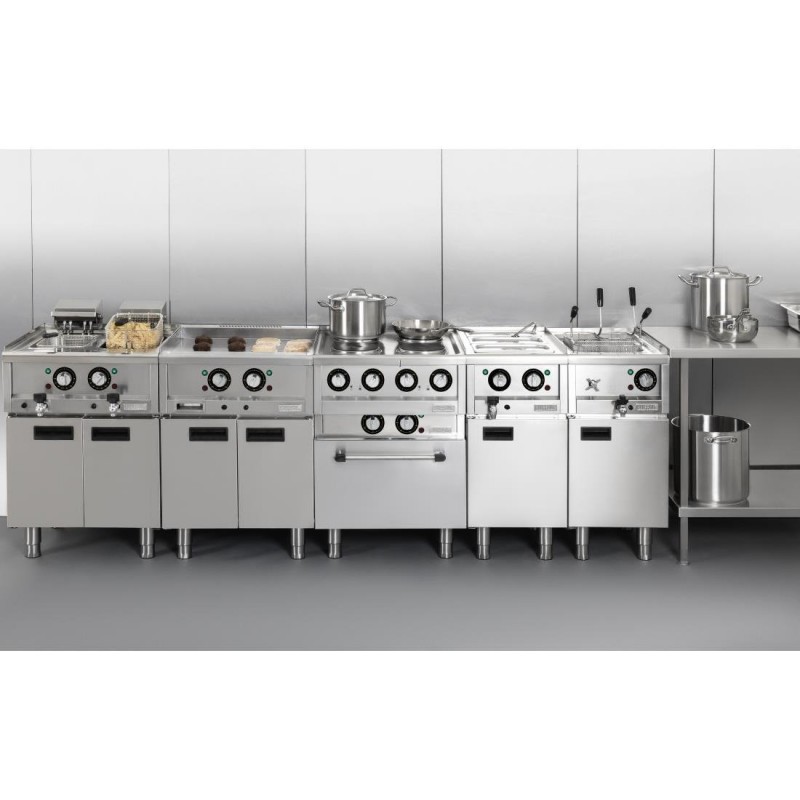 Part of the Buffalo 600 Series, this electric fryer is designed to suite with other 600 Series appliances, giving you a tidy, seamless cook line whatever the size of your kitchen. This fryer can either be used as a countertop appliance or positioned on top of 400mm wide 600 Series cupboards (sold separately).