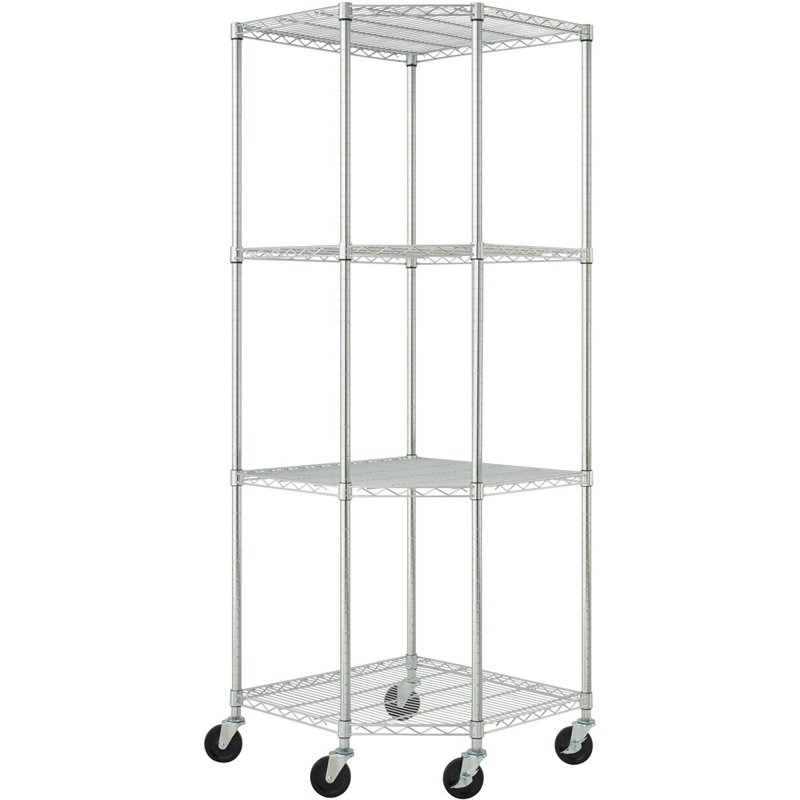 Commercial 4 Tier Pentagon Shelving Unit Chrome Wire with Wheels 1000kg 680x680x1880mm | Stalwart DA-CJA1363