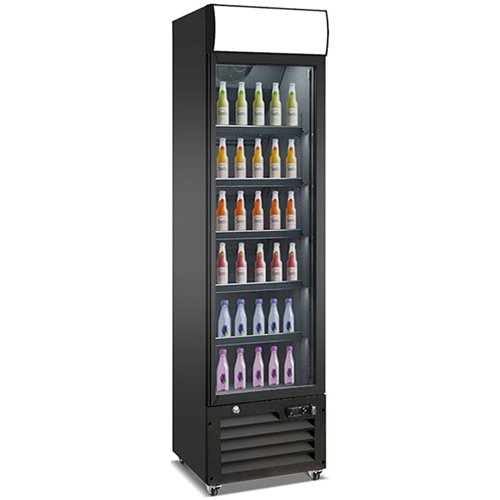 Commercial Bottle Cooler Upright 220 litres Single Glass Door with LED Canopy in Black | Stalwart DA-KXG220H
