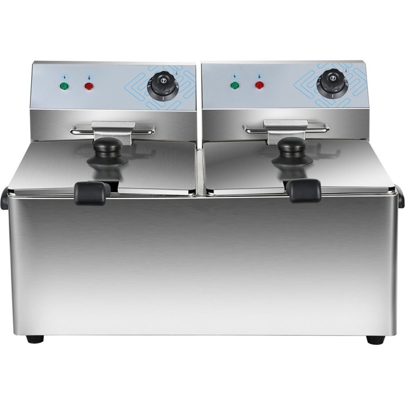 A great quality double tank professional electric fryer. Incredibly space saving with its 480mm width yet large capacity with 2 x 8 litre tanks. An ideal piece of equipment for high output fast food catering businesses it's a must have for any restaurant, café, takeaway or canteen. Huge discount savings at the moment at this bargain sale price.