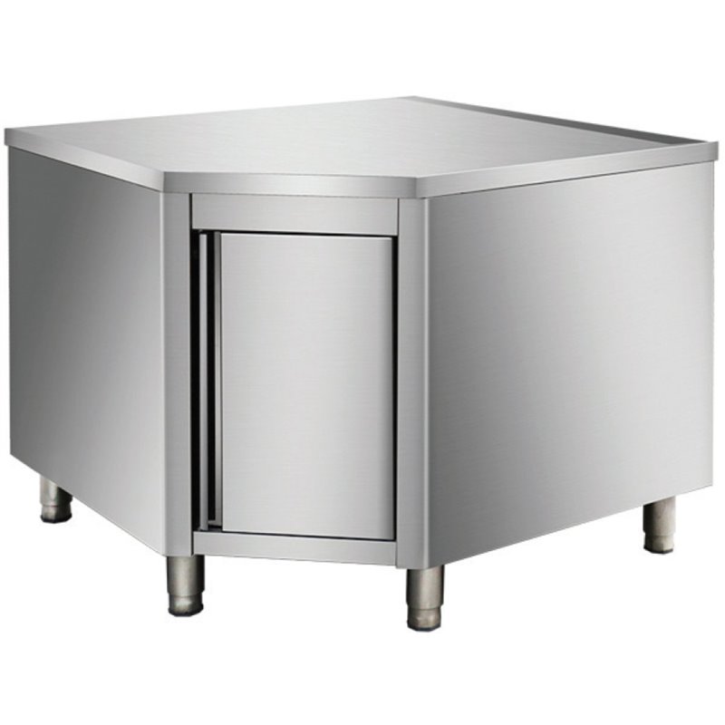 Premium professional worktop corner cabinet suitable as a stand alone corner unit or together with other kitchen cupboards or work tables with a depth of 600mm. Ideal for any restaurant or other catering kitchens.