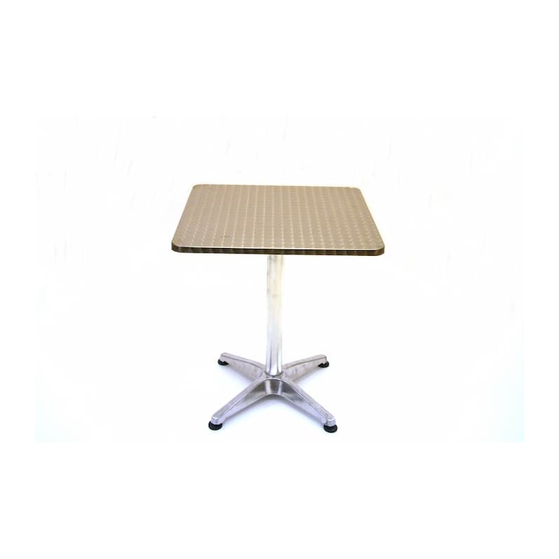 Aluminium cafe set comprising of 1 x 60 cm square aluminium Bolero table and 4 x standard aluminium chairs.