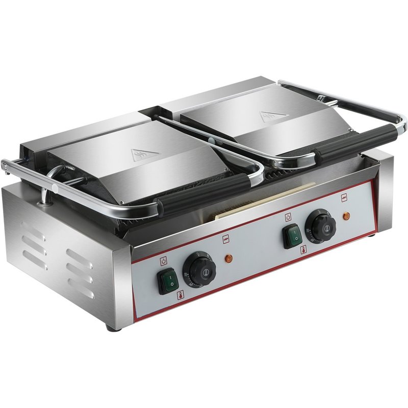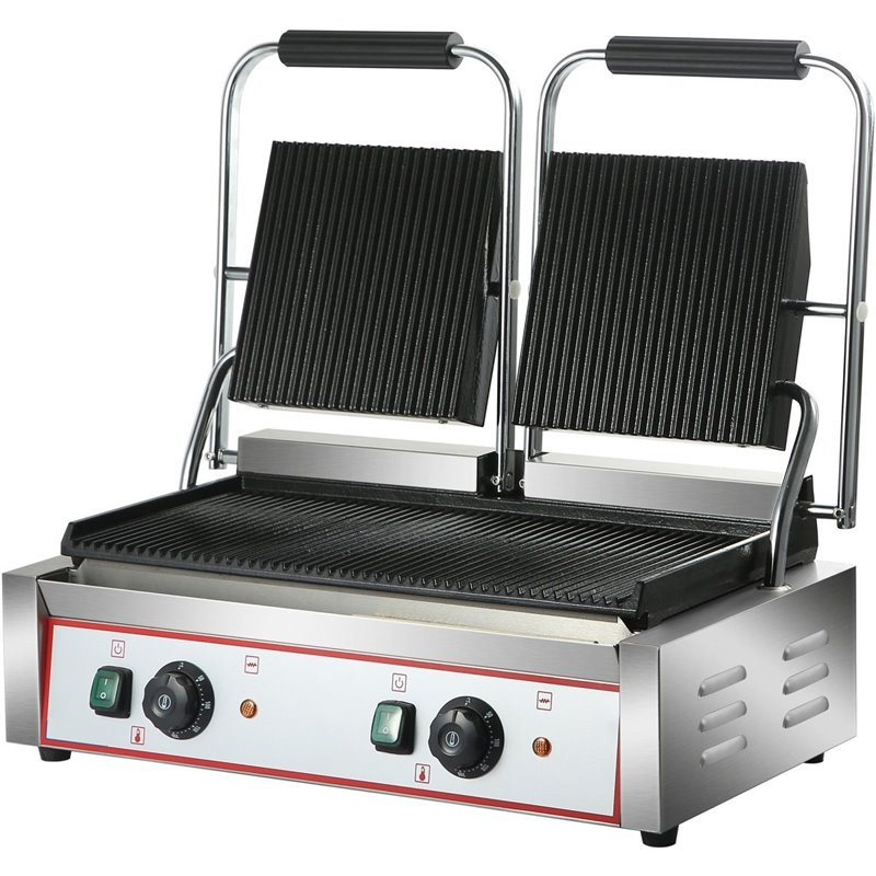 Heavy Duty Twin Panini Contact grill Ribbed 3.6kW Dual Zone | Stalwart DA-HEG813