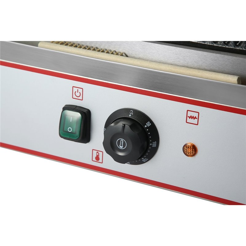 Grill your most popular sandwiches to perfection with this multi contact panini sandwich grill! This grill features cast iron plates to evenly cook sandwiches. The thermostatic controls let you adjust temperatures so you can cook at the perfect temperature, while the stainless steel exterior frame ensures long-lasting durability. Great for grilling paninis, sandwiches, bread, and even hamburgers and quesadillas, this versatile grill will add variety to your establishment!