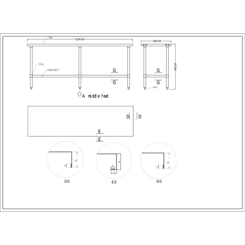 Commercial Stainless Steel Work Table Bottom shelf 2100x600x900mm | Stalwart DA-WT60210G
