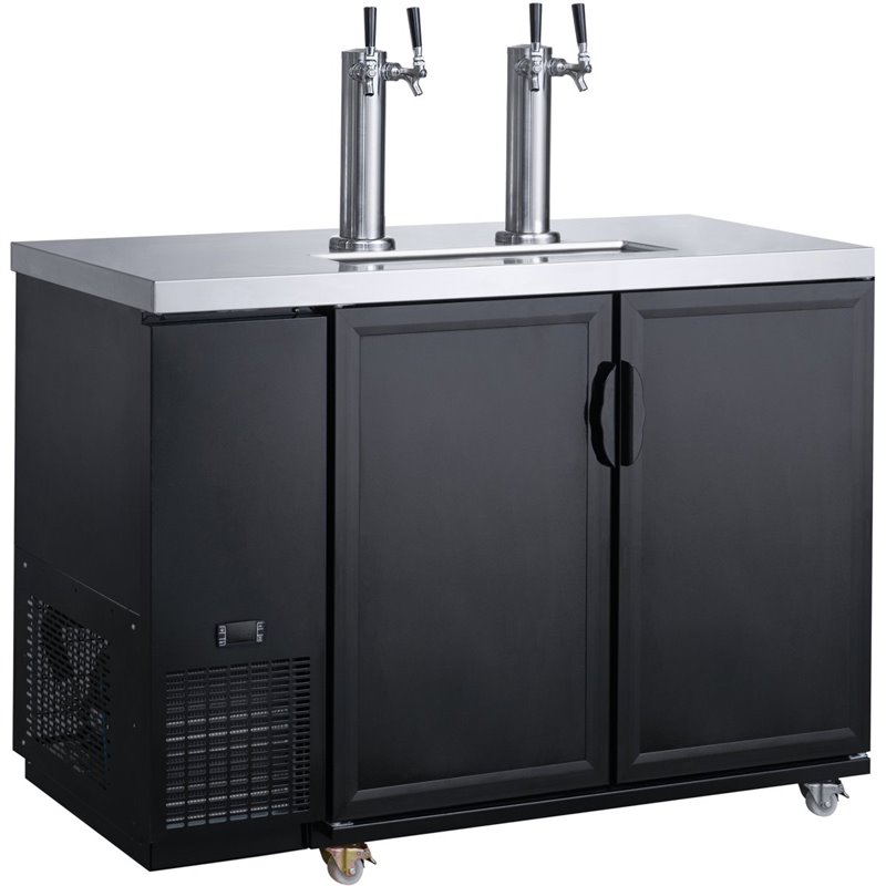 Direct Draw Beer Dispenser - Twin Door Keg Cooler with Double Beer Taps Black | Stalwart DA-DKB60M2