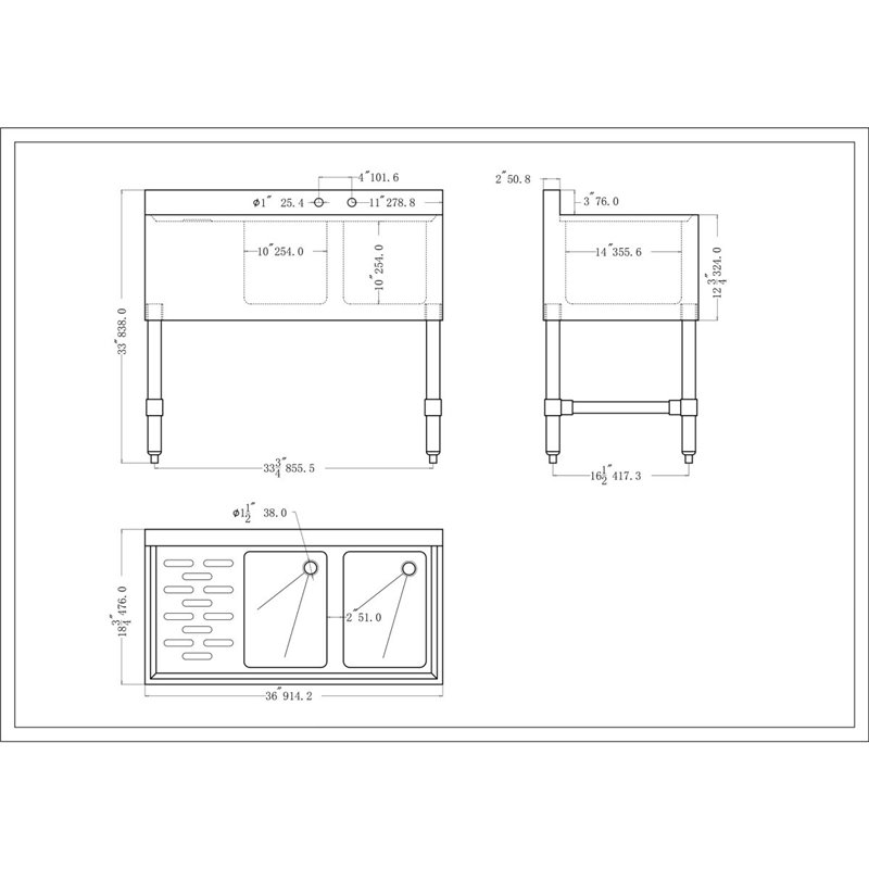 Commercial Sink Stainless steel 2 Bowl Left side Drain board | Stalwart DA-BS2T36L