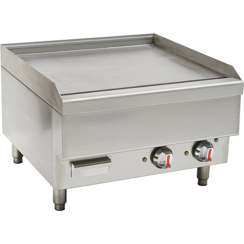 Powerful and reliable, this professional steel griddle features a generously sized steel cooking surface that is all smooth, perfect for breakfast, lunch or dinner services. The heavy duty elements ensure a rapid heat up and an even spread of heat across the wide griddle surface. With simple dial thermostat control and removable fat collection drawer, the restaurant griddle is incredibly easy to use, clean and maintain. This catering fry top is an incredible bargain at the current discount sale price.