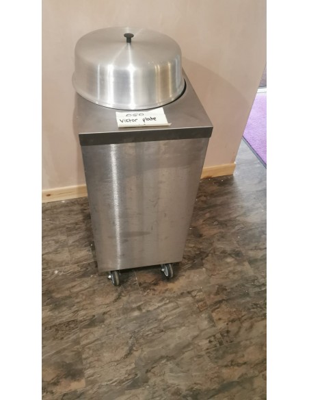 Mobile heated plate dispenser with lid constructed from stainless steel.