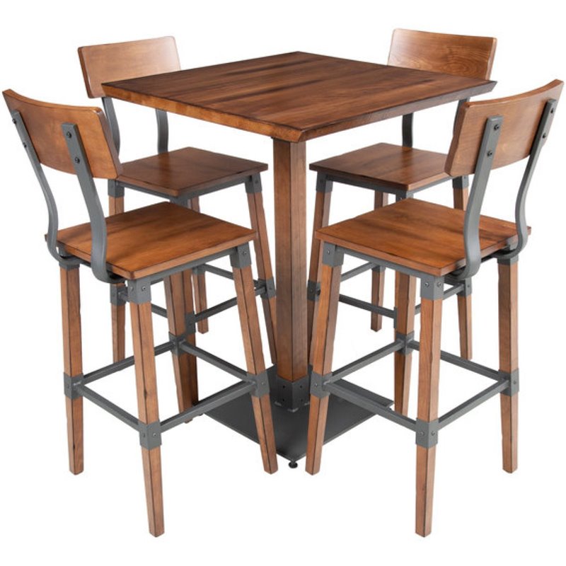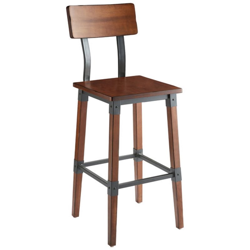 This barstool has a rustic wooden design with black metal accents. This stool is perfect for both bar and raised table seating and will provide unmatched comfort while maintaining a distinct appearance. Its reliable and rustic design ensures you'll be using this barstool in your pub or restaurant for years to come.