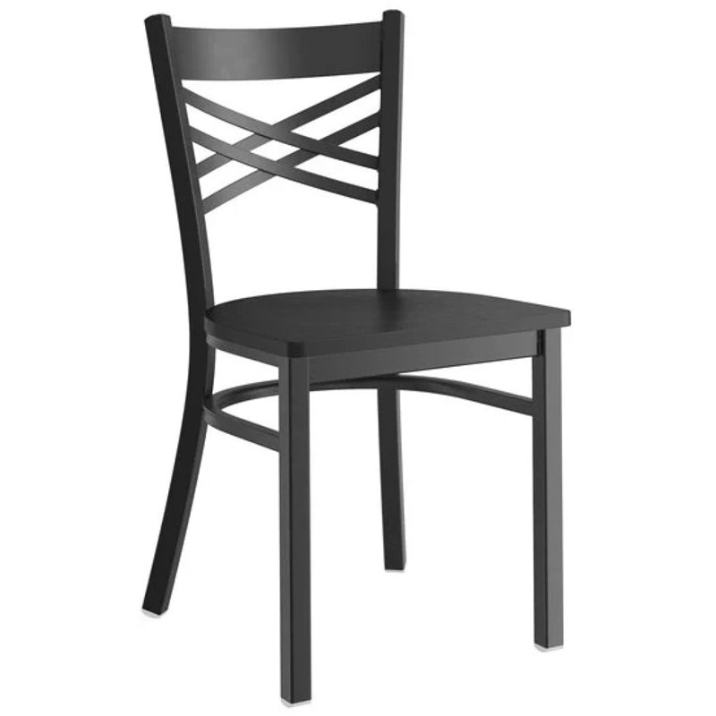 Black Steel Cross Back Chair with Black Wood Seat | Stalwart DA-GS6F0BBLACKWOODSEAT