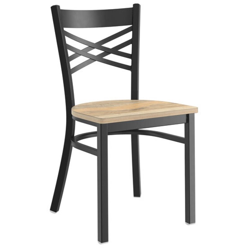Black Steel Cross Back Chair with Driftwood Seat | Stalwart DA-GS6F0BBLACKDRIFTWOODSEAT