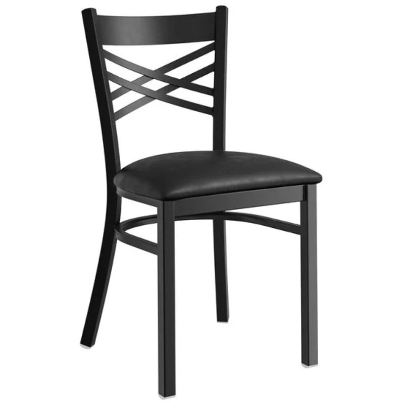 Black Steel Cross Back Chair with Black Vinyl Cushion Seat | Stalwart DA-GS6F0BBLACKCUSHSEAT