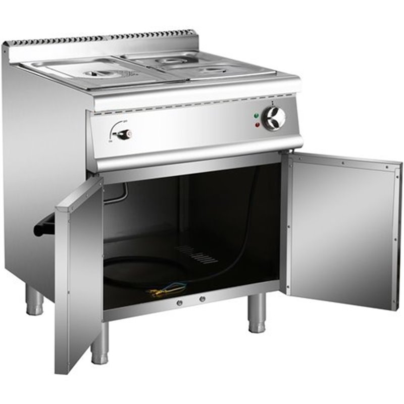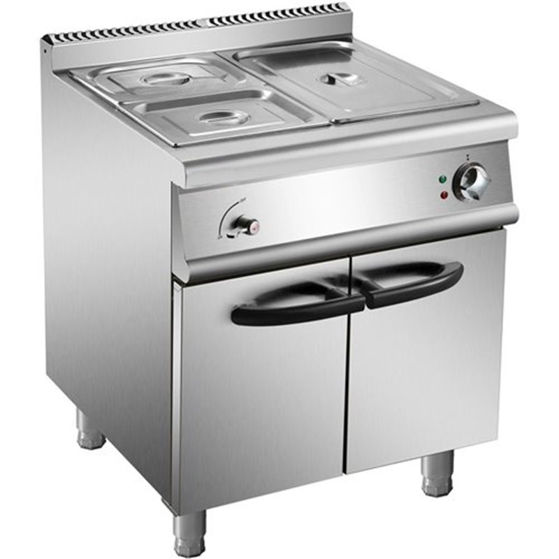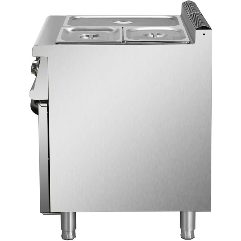 This professional free standing bain marie with cabinet base is the ideal catering appliance for keeping large batches of food warm, ready for plating or service. Designed to provide a reliable, consistent heat. With a 700mm depth, tihs electric bain marie seamlessly fits into the modular cooking range.