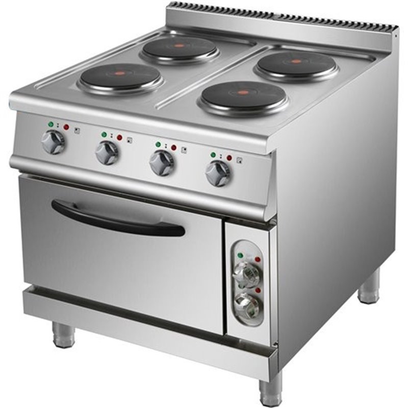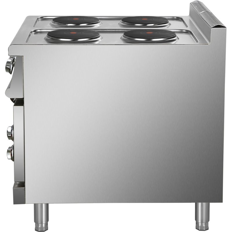 Heavy duty, high quality 4 burner electric cooker with electric oven constructed from stainless steel. This electric range oven has a depth of 900mm to seamlessly fit in with our modular cooking range.